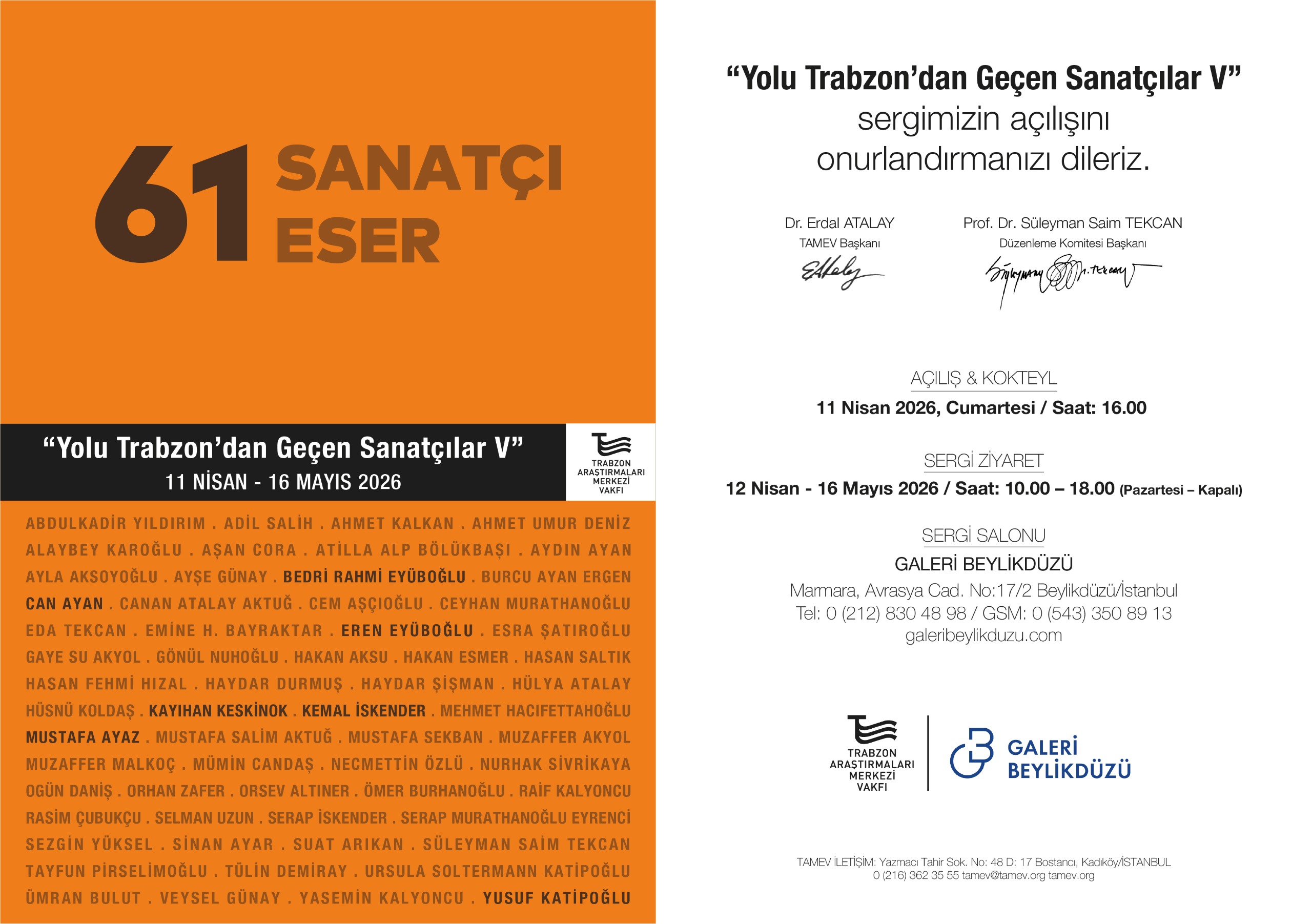 24 Kasım 2025 Pazartesi günü saat 17.30'da Trabzon Güzel Sanatlar Galerisi'nde açılacak.