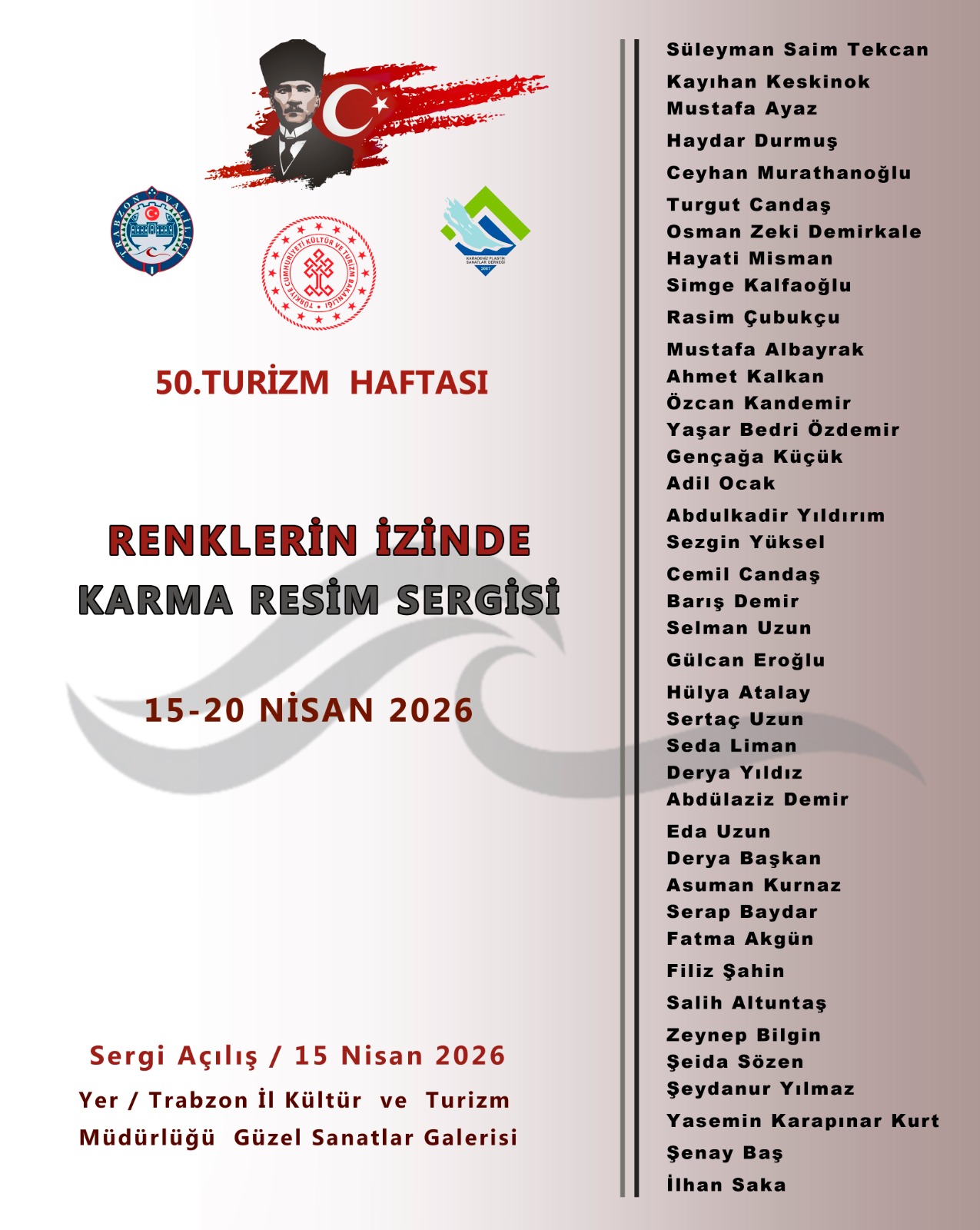 2 Nisan 2026 Perşembe günü saat 17.30'da açılışı yapılacak olan sergi, Trabzon İl Kültür v...